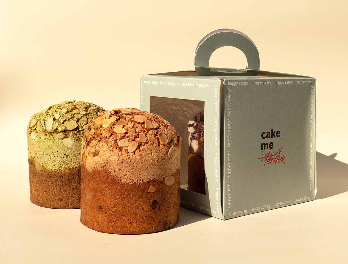 Изысканный кулич с чаем матча, добавлением темного шоколада и клубники под матча макаронадом.